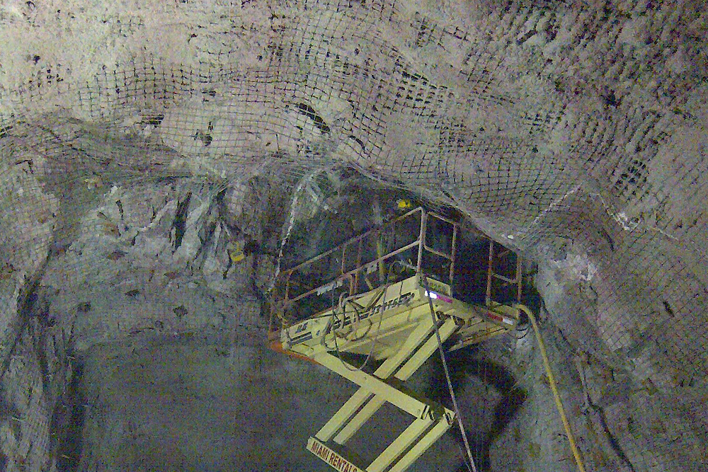 Revestimiento que estabiliza el macizo rocoso en paredes, techos y túneles subterráneos
